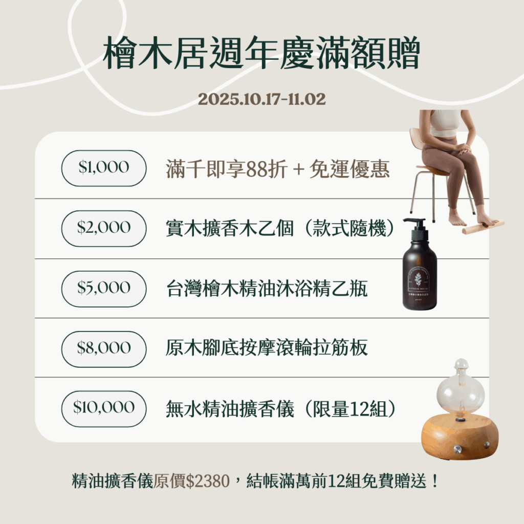 檜木居週年慶滿額贈活動預告 25.10.17-11.02
