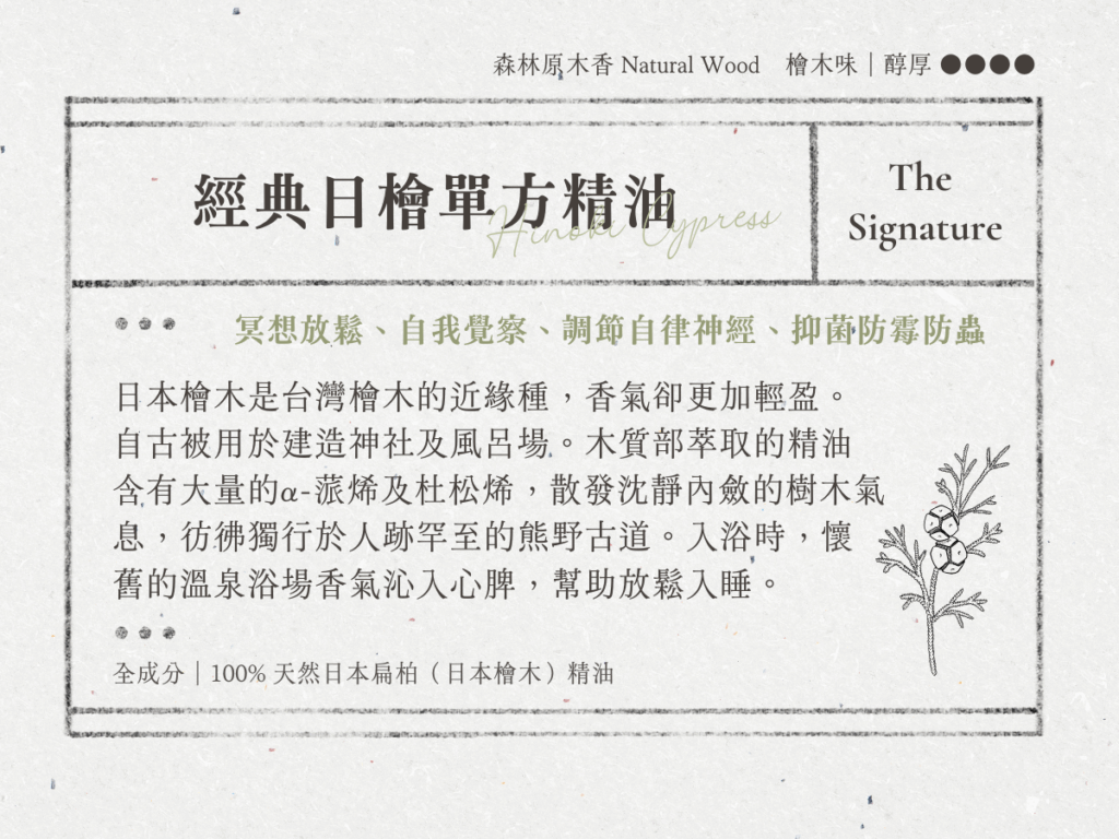 10ml精油選項:經典黃檜、經典紅檜、經典日檜、苔、菫、玫瑰、茶香、野薑花、柚子